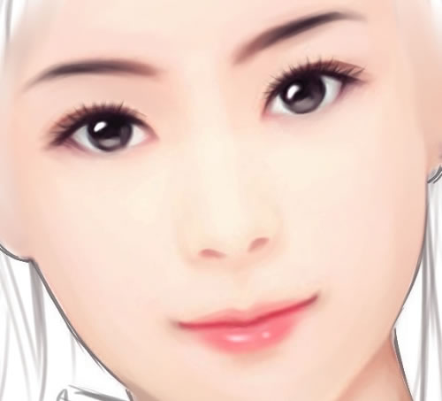 用較細的數(shù)碼噴槍選擇深紅色。畫出唇縫的陰影,注意唇角的陰影,然后修飾嘴唇邊緣,加上高光即可完成。