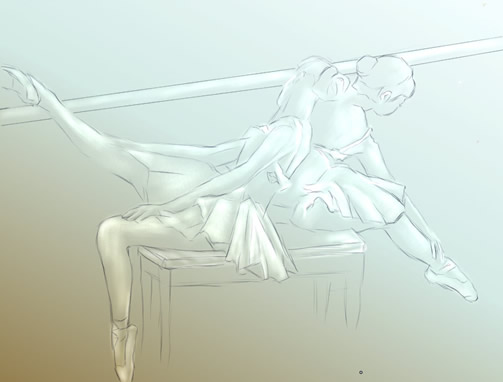 6、選擇畫(huà)布層,選擇erasers/bleach,在畫(huà)布層中按剛才的線(xiàn)描擦出基本的明暗關(guān)系。(效果見(jiàn)圖五)