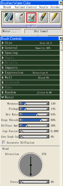 9、選擇water color/dry camel進(jìn)行局部的刻畫(huà)。(設(shè)置見(jiàn)圖八)