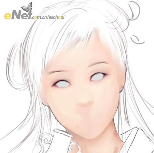 選擇“數碼噴槍”,加大畫筆直徑,在頭發區域內鋪滿底色,畫的時候根據頭發的明暗區域適當加重或減輕噴槍的壓力,畫出大致的色彩明暗。