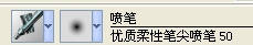 在工具欄中,選擇“畫筆”選項欄中,選擇“噴槍”按鈕。選擇黑色,新建圖層,在新圖層上畫出人物的輪廓。