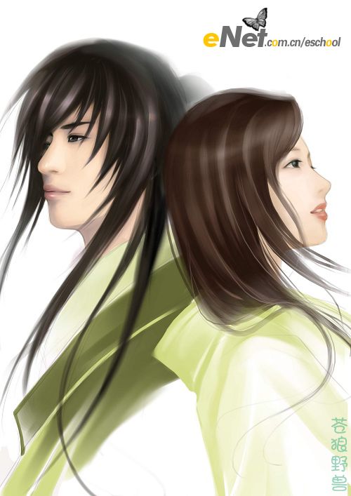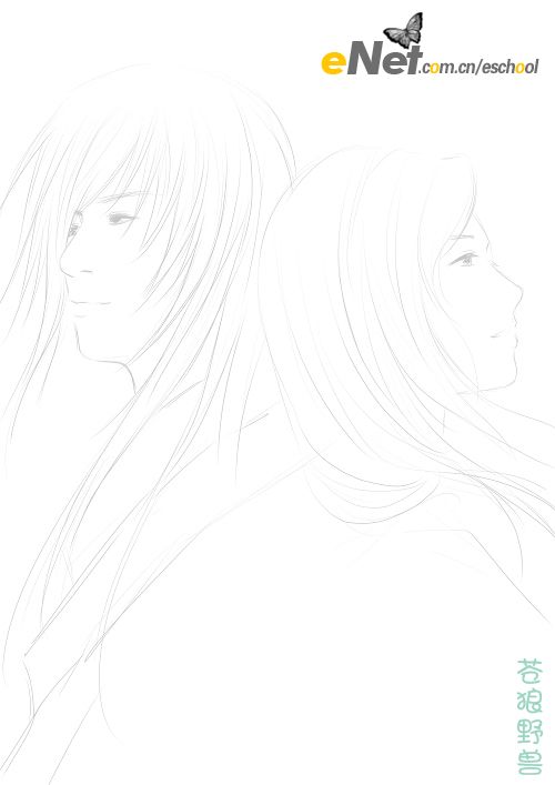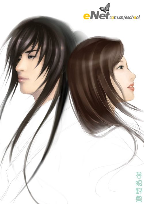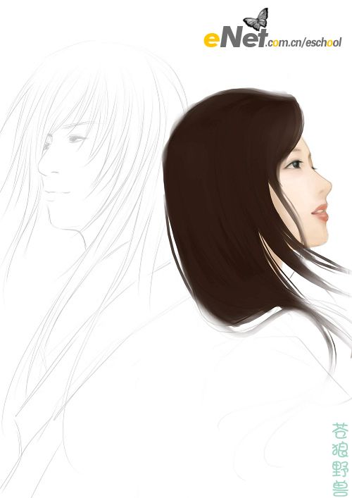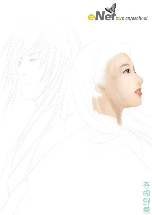 使用覆蓋鉛筆選擇淡但的頭發(fā)顏色畫出頭發(fā)的發(fā)絲,調(diào)整細(xì)節(jié)部分,再使用