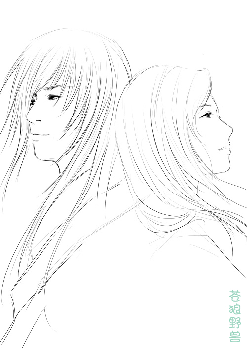 6.畫出男人的臉和頭發(fā),步驟還是和上面一樣,畫完后使用橡皮字頭發(fā)后擦出朦朧感。記得是畫筆中的橡皮而不是工具欄里的橡皮,工具欄里的橡皮不支持壓感,一擦就全沒了