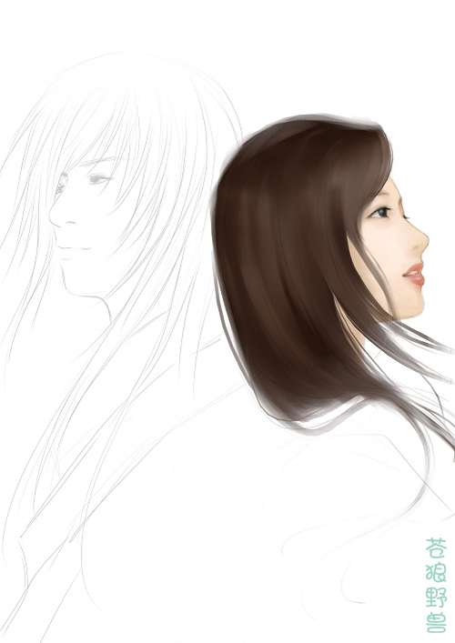 將顏色調(diào)淡畫出頭發(fā)的明暗對(duì)比