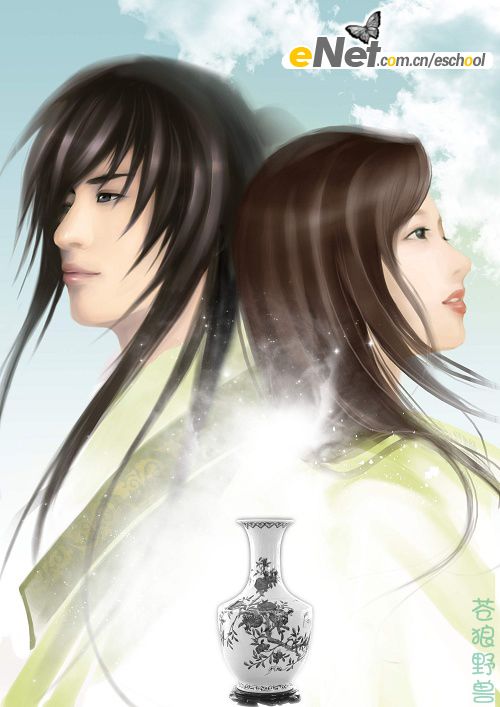 11.將素材中的青花瓷拉進(jìn)圖中正下方,處理好邊緣細(xì)節(jié)