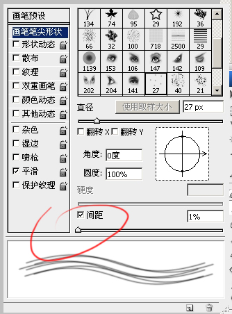 7、按f5打開畫筆控制面板,將間距調(diào)賬到1%(如圖)