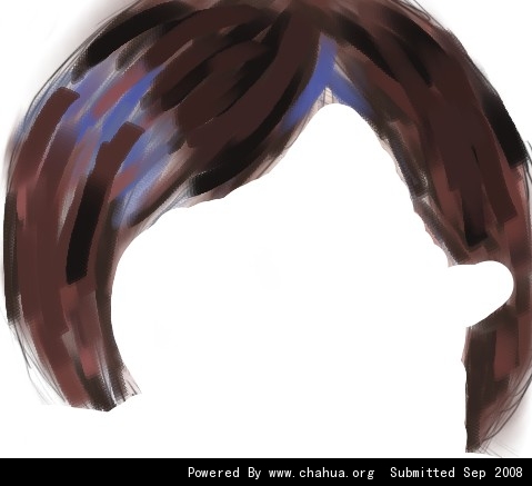 我的經驗來看,對于深色的頭發,畫的時候有4個步驟,首先是用深色大筆刷打底色,然后用小一些的筆刷和更加深的顏色把頭發的暗部打出來,接著用淺色把一些細節提亮,然后在這些亮部和暗部一些適當的位置用更加小的筆刷和更明亮的顏色再進一步提亮。而且一定要牢記雖然頭發是一簇簇的,但是畫的時候要有一個整體的感覺,只有少數邊緣的頭發和劉海可以做比較細節的處理。當然,以上步驟不適合于超級塞亞人的頭發。