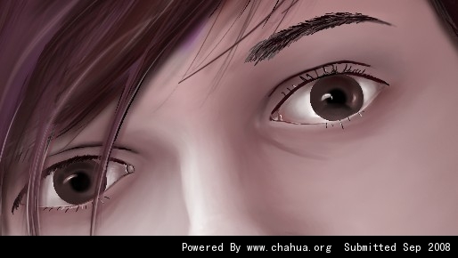 虹膜,也就是黑眼珠,可以開一個位于眼白上的圖層來畫,理論上它是一個深色透明體,所以不能畫成黑色,最好要加一些深紅色,不要加多了,因為這年頭,連照相機都能防紅眼了。另外,它會象一個凸透鏡一樣在表面形成人物面前物體的一個印象,這就是很多小說電影里偵探們從人質或者嫌犯的眼睛里找到線索的理論依據,不過一般來說,我們不必在虹膜上畫一把帶血的刀子或者爆炸的汽車,只要用一個模糊的色塊代替就可以了。