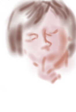 接下來新建一個圖層,忽略頭發和五官,先用調和筆中的加水筆把臉上的皮膚顏色處理均勻。注意臉部肌肉所形成的明暗變化。