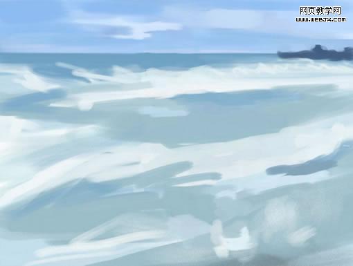3.放松、快速地繪制背景,畫出海平面,注意整體調子的變化。