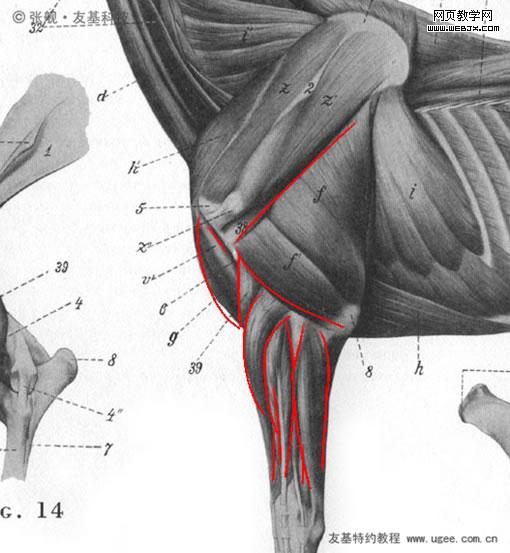 10.這里特別要提的一點是,即便是臨摹練習,也不能“依葫蘆畫瓢”的照著畫。要理解結構,好的參考必不可少,介于這張臨摹練習的馬匹的動態姿勢和角度,前胸肌肉、馬頭和前腿的參考價值比較大。在進一步深入之前可對參考資料進行簡單的結構分析。