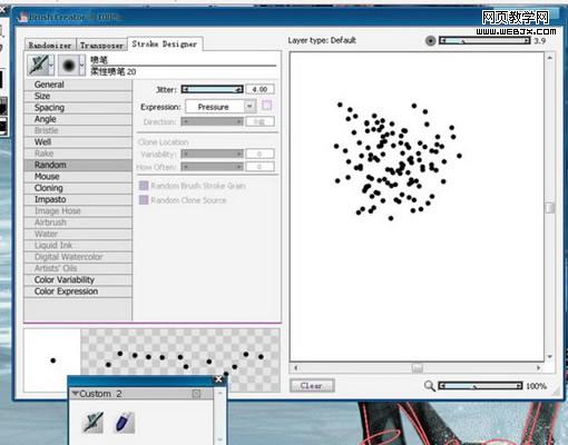 8.畫海浪的水珠飛濺可以通過調整筆頭的一些參數來進行。選圓頭的噴槍,按 ctrl + b 快捷鍵調出畫筆參數調整面板,對間距和散步參數進行調整,就可以輕松模擬出海浪水珠效果了。