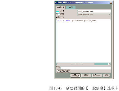【參見光盤文件】:第10章/createviewgraduate.sql。