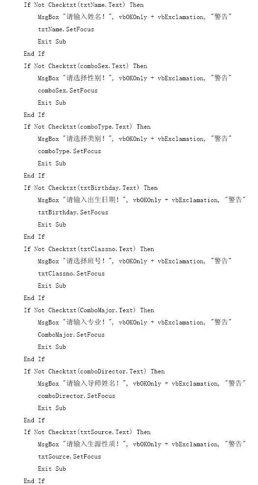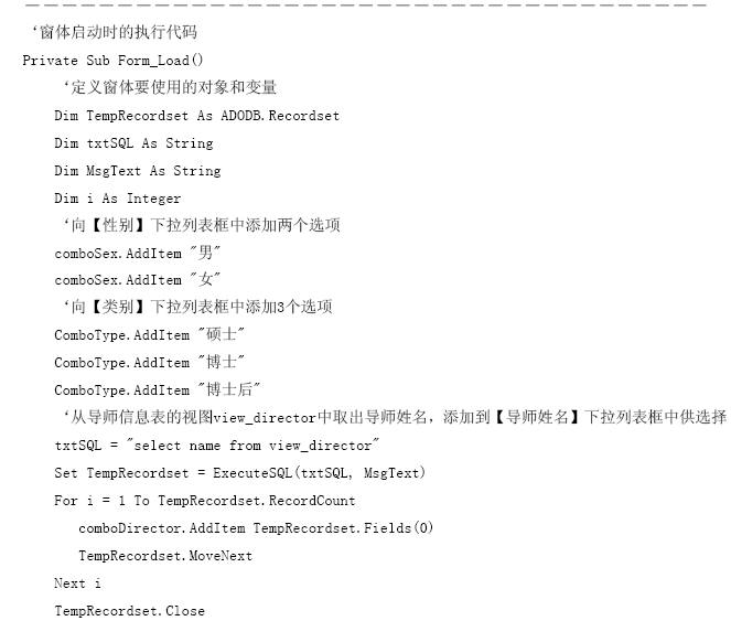【參見光盤文件】:第10章/研究生管理信息系統(tǒng).vbp。