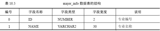 【參見光盤文件】:第10章/createtablemajorinfo.sql。