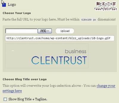 在此處設置Logo圖片。如果勾選Show Blog Title+Tagline,則logo圖片不再生效,而直接顯示blog title和tagline的文本。