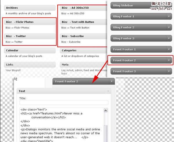 在Appearance-Widgets菜單里,我們可以發現左邊的可選widget窗體多了好幾個以Bizz開頭的。