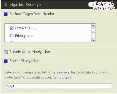 創建完pages后,導航上會直接出現鏈接。可以在Berita Theme Options 去掉你不希望顯示在導航上的page。