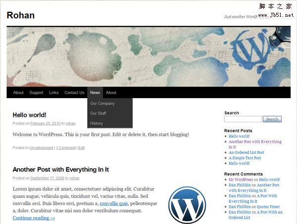 WordPress 3.0將配置一個名為TwentyTen(2010)的新默認主題。 照這么看,WordPress團隊似乎打算每年推出一款默認主題。 TwentyTen是一個很漂亮的主題。 該主題所用字體為Georgia,兩欄模式,側邊欄和頁腳支持widget——還內置很炫的下拉式菜單哦。 不用多說,到時也將推出自定義頁頭和背景(新功能)功能。