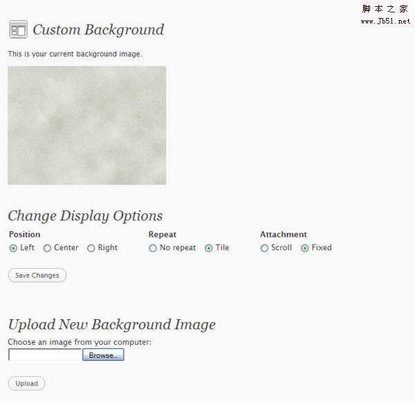 WordPress 3.0將支持對背景的定制。 在functions.php中加上以下代碼,使你的主題支持背景定制: