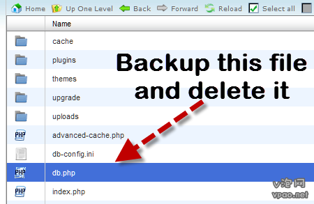 1.FTP打開/wp-content/中,找到db.php,先備份一下,然后就刪除。進入后臺后,把DB-Cache緩沖插件關閉再開啟就好了。