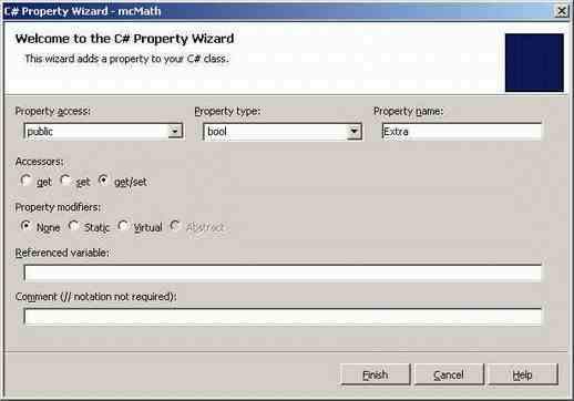 同理可以通過C#屬性生成向導,向類中增加一個屬性: |