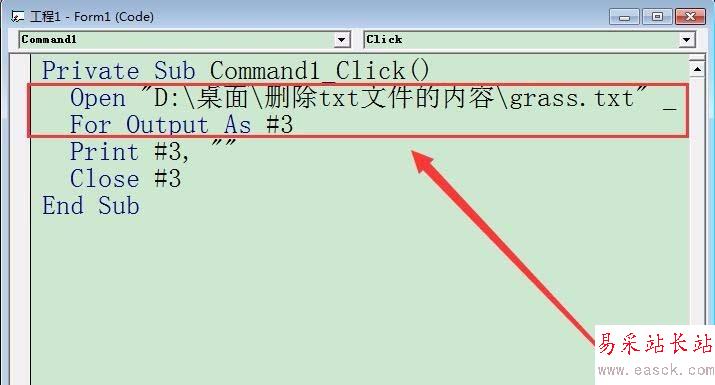 8、打開代碼編輯窗口,打開文本文檔grass.txt,并把它保存在#3中。