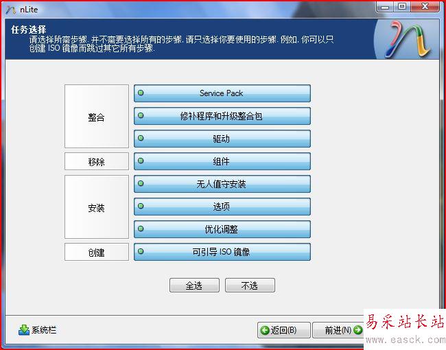 任務選擇:選擇你后面要進行的操作,為了演示,這里我全選了。點擊前進