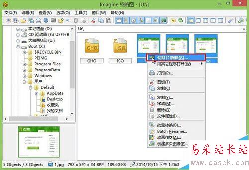 3、點擊打開你所存放圖片的文件夾,全選你所需要播放的圖片,右鍵選擇“幻燈片放映(S)...”進入下一步操作。如下圖所示