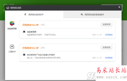 4、在保持啟動(dòng)項(xiàng)選項(xiàng)欄中,我們可以看到很詳細(xì)的啟動(dòng)組件,不過不建議大家禁止系統(tǒng)組件。