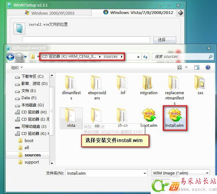 1.運行WinNTSetup硬盤安裝器,選擇install.wim文件