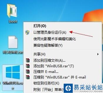 2、鼠標右鍵以管理員身份運行Win8USB程序。