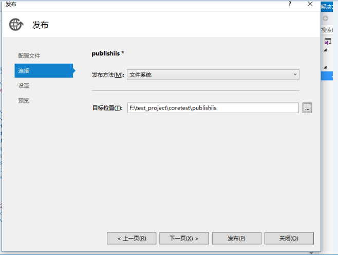 然后配置站點,配置過程與之前版本一樣,把目錄指向剛才發布的位置如 F:/test_project/coretest/publishiis