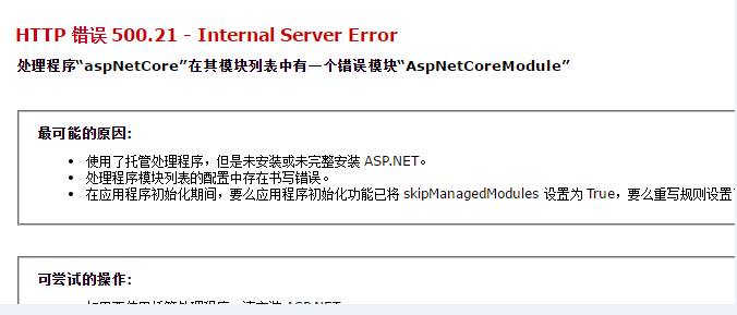 如果出現以下錯誤,請查看下server hosting 是否在站點處理程序與模塊內。