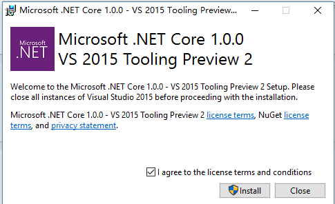 2> .NET Core 1.0 for Visual Studio (包括asp.net core 模板,其中如果機器上沒有.net core sdk會默認安裝)地址https://go.microsoft.com/fwlink/?LinkId=817245