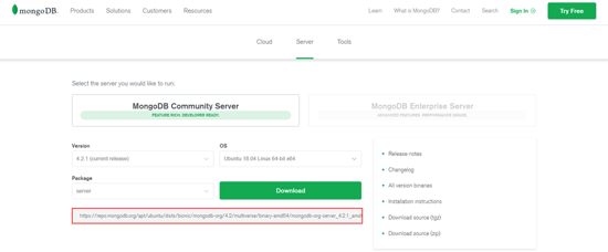 # 更新 apt-get update # 下載curl apt-get install curl # 下載mongodb官網對應linux版本的壓縮包 get curl -O https://fastdl.mongodb.org/linux/mongodb-linux-x86_64-ubuntu1804-4.2.1.tgz # 解壓mongo壓縮包 tar -zxvf mongodb-linux-x86_64-ubuntu1804-4.2.1.tgz # 移動解壓文件到全局安裝目錄 mv mongodb-linux-x86_64-ubuntu1804-4.2.1.tgz /usr/local/mongodb # 設置path路徑 export PATH=/usr/local/mongodb/bin:$PATH