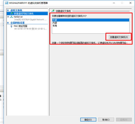 打開hyper-v管理器,首先新建"虛擬交換機" 以便虛擬系統訪問網絡。