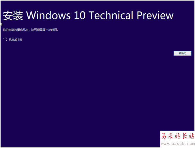 如果用戶確認重啟,則開始微軟自身的系統(tǒng)安裝過程。