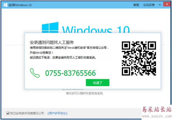 (2)先提醒用戶人工服務的電話和二維碼,以防在安裝過程中出現(xiàn)意外,不知道該如何反饋