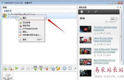 5、然后在打開的光盤鏡像文件上右擊--載入命令。