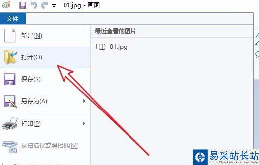 2、接下來我們在打開的畫圖應用窗口中,點擊“文件/打開”菜單項。