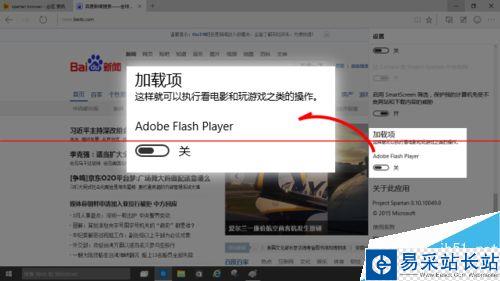 點擊控制欄最右側的“三個點”按鈕(More actions)-->設置-->滾動到最后,有一個 flash player 的開關;關掉它,網頁上就不能播放 flash 動畫了。它關得還挺徹底,其他瀏覽器也有類似功能,不過會留下一個難看的黑框;Spartan 直接把有 flash 的地方變成空白。