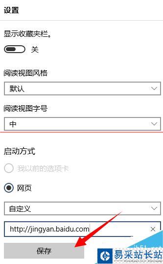 5、輸入你要設置的網站做為它的首頁,設置好以后,然后再點擊【保存】下次打開斯巴達Project Spartan瀏覽器時候就是這個網站。