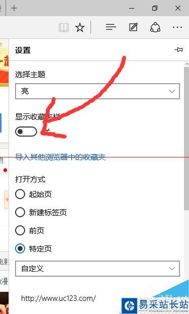 4、、然后把顯示收藏夾欄的狀態改成“開”。