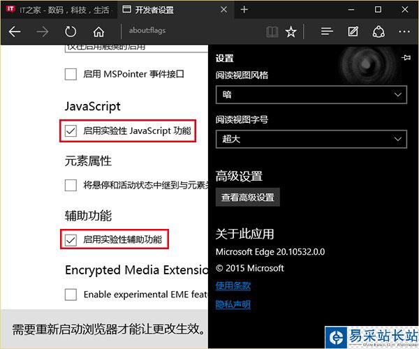 根據微軟官方介紹,勾選這三個項目后,Edge瀏覽器的流暢度會明顯提升。需要注意的是,以上三個選項適用于Win10正式版10240的Edge瀏覽器,在最新的Win10預覽版10532中,沒有“啟用asm.js”項,因此相關用戶勾選其他兩項即可,下圖示