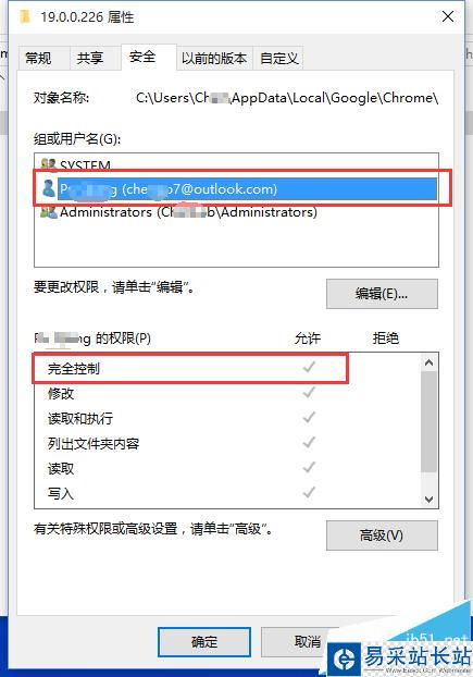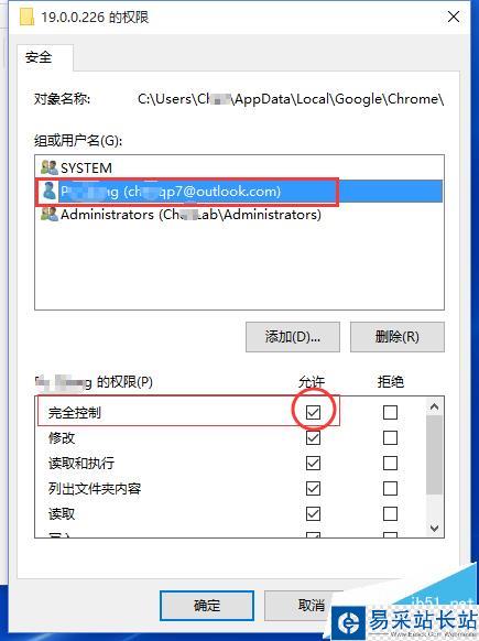 5、檢查一下添加的用戶,即登陸系統使用的用戶,是否有完全控制的權限了,最后點擊“確定”。此時Chrome應該可以完美打開Flash視頻了!
