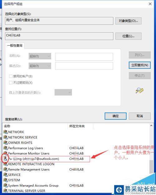 3、在查找出的列表中找到您的用戶,選中后點擊“確定”