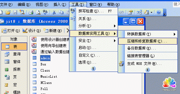 4。執(zhí)行上面的“工具” --- “數(shù)據(jù)庫(kù)實(shí)用工具”---“壓縮和修復(fù)數(shù)據(jù)庫(kù)” 。如圖: