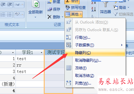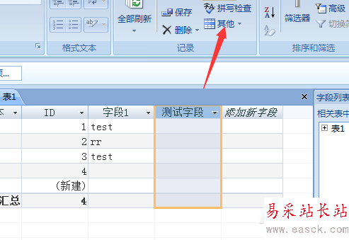 4、選中了字段之后,點擊菜單中的其他的選項。