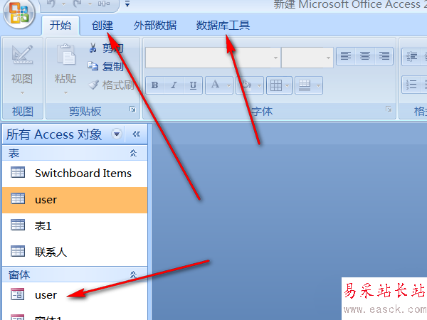 5、看到打開的數(shù)據(jù)庫(kù)里,選項(xiàng)卡又出現(xiàn)了,按鈕又變的可以用了。